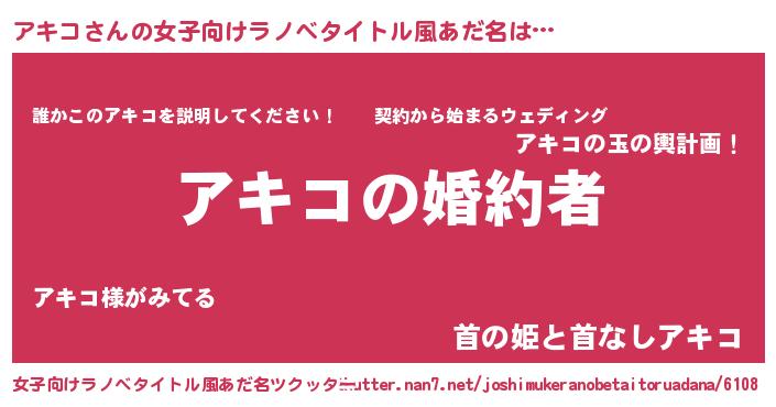 | ファンタジー風あだ名 | 『エターナルアキコー』『アキフェル』 |