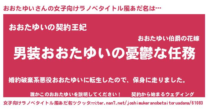 | 男性向けラノベタイトル風あだ名 | 『うちのおおたゆいが世界を掌握している!』 |