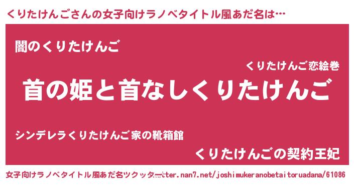 | 意味不明あだ名 | 『自称くりたけんご』 |