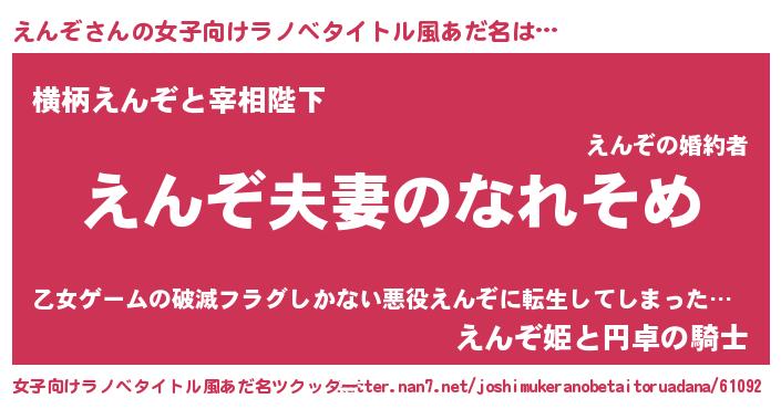 | ヘコむあだ名 | 『えんにー』『豆乳』『えんを』 |