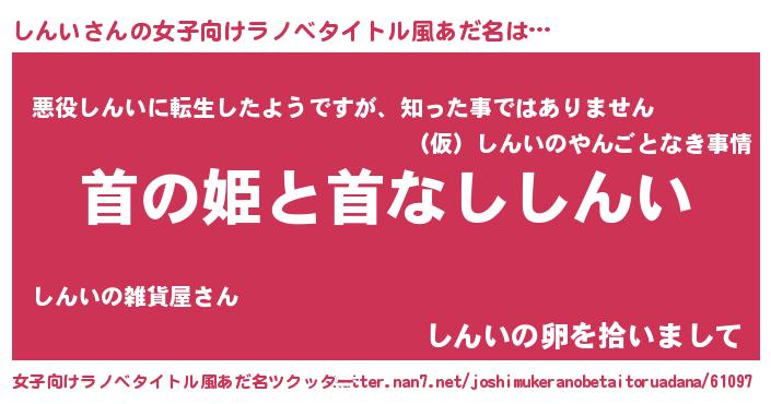 | 男性向けラノベタイトル風あだ名 | 『はたらくしんいさま!』『しんいの憂鬱』 |