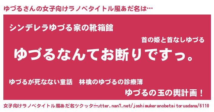 | 男性向けラノベタイトル風あだ名 | 『魔法科高校のゆづる』 |