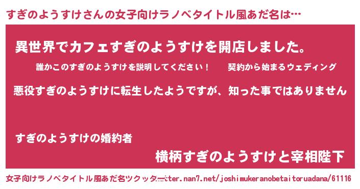 | 男性向けラノベタイトル風あだ名 | 『この素晴らしい世界にすぎのようすけを!』 |