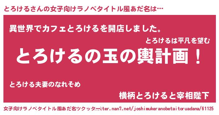 | ヘコむあだ名 | 『とろける(笑)』『とろを』『牛乳』 |