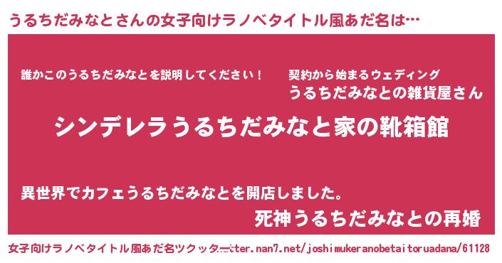 | 恥ずかしいあだ名 | 『プリティーうるちだみなと』『うるちん』 |