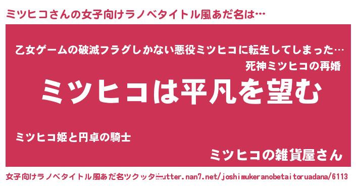 | ヒーロー風カッコイイあだ名 | 『暗黒騎士ミツ』『仮面ミツダー』 |