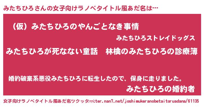| 男性向けラノベタイトル風あだ名 | 『魔弾の王とみたちひろ』 |