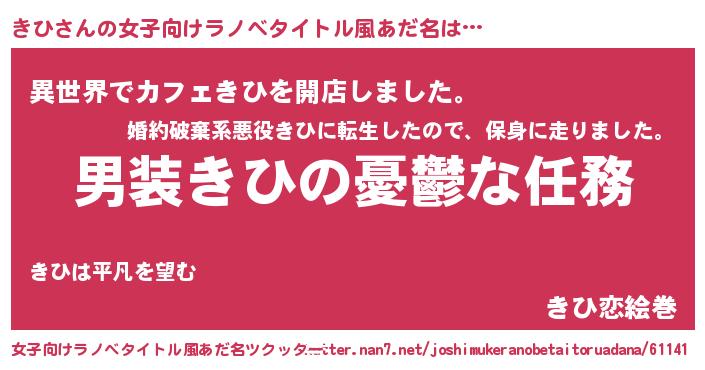 | 男性向けラノベタイトル風あだ名 | 『うちのきひが世界を掌握している!』 |