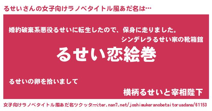 | 胡散臭い通販商品みたいなあだ名 | 『お金では代えられない隕石のかけら…その名も「るせい」』 |