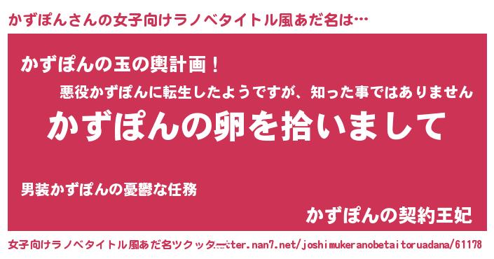 | 男性向けラノベタイトル風あだ名 | 『ダンジョンにかずぽんを求めるのは間違っているだろうか』 |