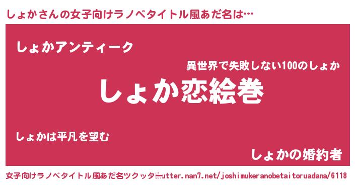 | 男性向けラノベタイトル風あだ名 | 『ノーゲーム・ノーショカ』 |