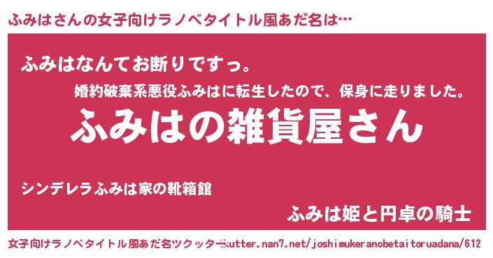 | 男性向けラノベタイトル風あだ名 | 『やはりふみはの青春ラブコメはまちがっている 』 |