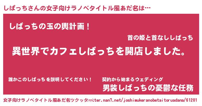 | 男性向けラノベタイトル風あだ名 | 『誰もが恐れるあのしばっちが、ぼくの専属メイドになるようです。』 |