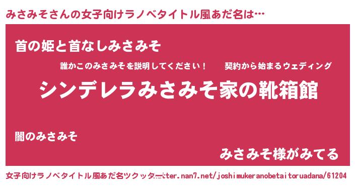 | 胡散臭い通販商品みたいなあだ名 | 『信頼と実績のネックレス…その名も「みさみそ」』 |