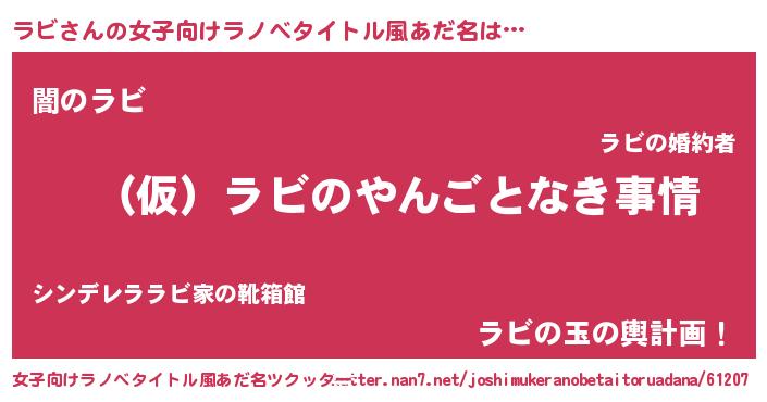 | 胡散臭い通販商品みたいなあだ名 | 『必ず成功するブレスレット…その名も「ラビ」』 |