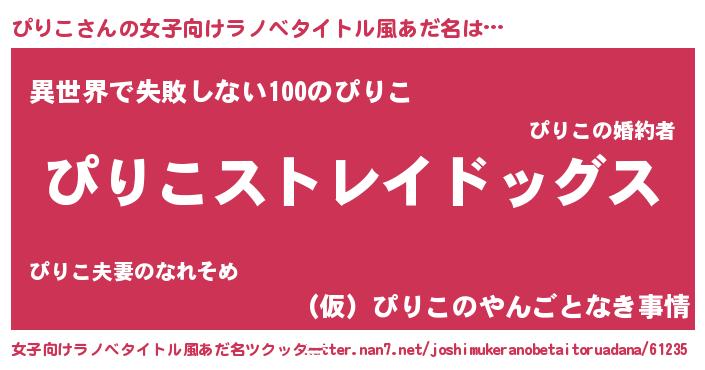 | 男性向けラノベタイトル風あだ名 | 『Re:ぴりこから始める異世界生活』 |