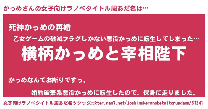 | 男性向けラノベタイトル風あだ名 | 『かっめに滅ぼされるだけの簡単なお仕事です』 |