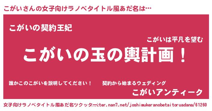 ヘコむあだ名 | 『こがい(笑)』『こがを』『こがにー』 |