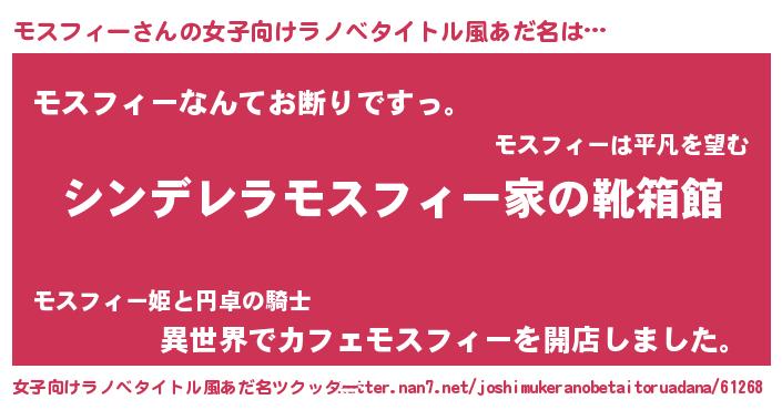| 男性向けラノベタイトル風あだ名 | 『緋弾のモスフィー』『モスフィーの憂鬱』 |