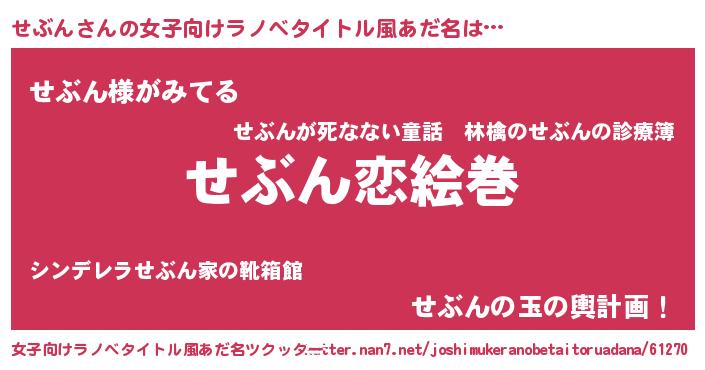 | ヒーロー風カッコイイあだ名 | 『愛の使者せぶん』『炎刃騎士セブ』 |