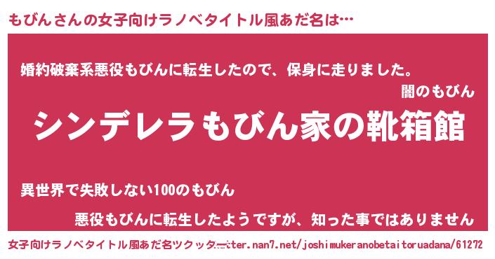 | ヘコむあだ名 | 『もびん(笑)』『もびっぺ』『つくし』 |