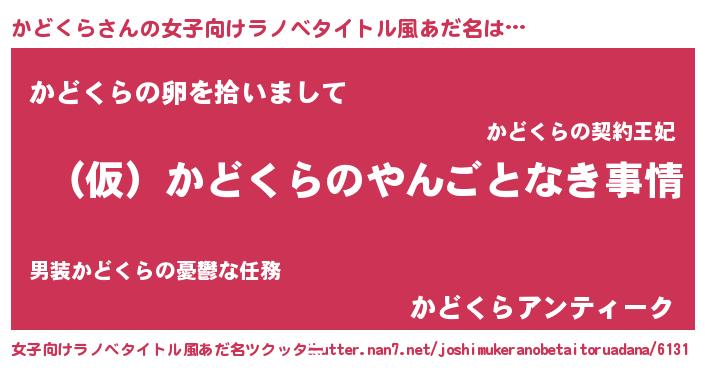 | 男性向けラノベタイトル風あだ名 | 『かどくらの憂鬱』 |