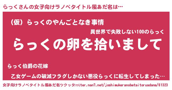 | ヘコむあだ名 | 『らっお』『らっにー』『らっく(笑)』 |