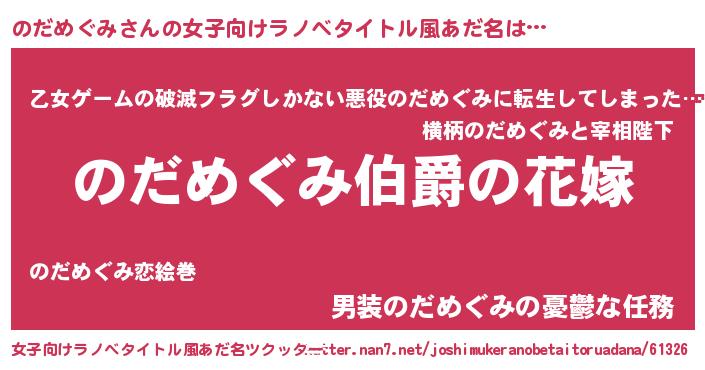 | ファンタジー風あだ名 | 『エターナルノダメグミー』 |