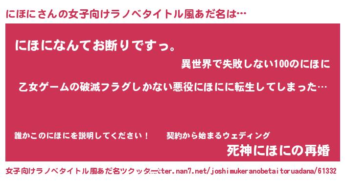 | 胡散臭い通販商品みたいなあだ名 | 『世界中を虜にした100年もののヴィンテージワイン…その名も「にほに」』 |