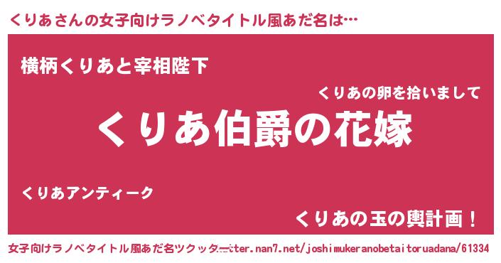| 男性向けラノベタイトル風あだ名 | 『やはりくりあの青春ラブコメはまちがっている 』 |