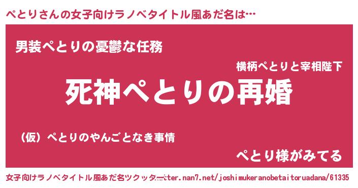 | ヘコむあだ名 | 『ぺとぷりん』『ぺとにー』 |