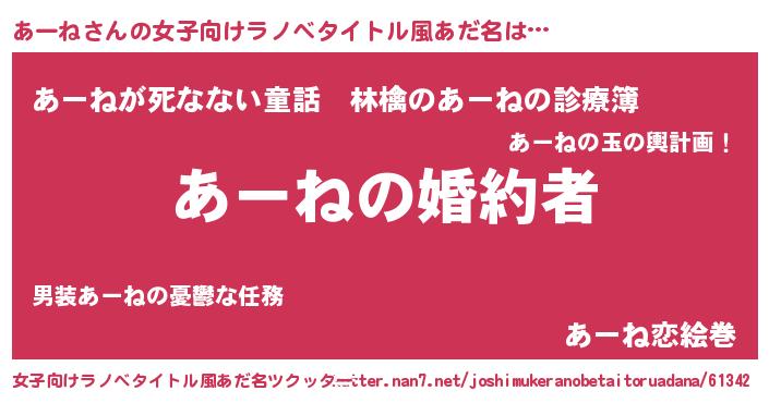 | 意味不明あだ名 | 『あーねフォーエバー』『自称あーね』 |