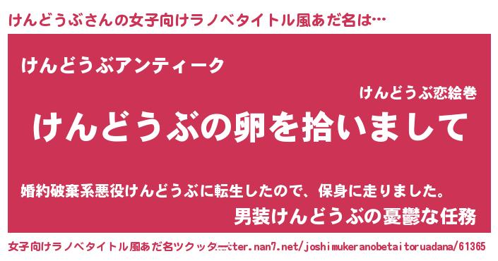| ヘコむあだ名 | 『けん太郎』『けんどうぶ(爆)』 |