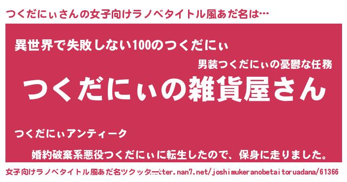 | 意味不明あだ名 | 『つくだにぃフォーエバー』 |