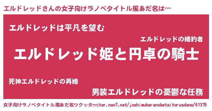 | 男性向けラノベタイトル風あだ名 | 『エルドレッドアートオンライン』 |