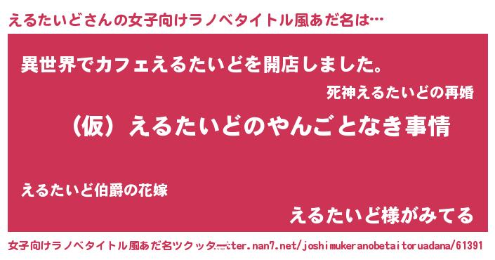 | 男性向けラノベタイトル風あだ名 | 『えるたいどの憂鬱』 |