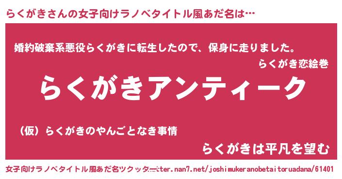 | 意味不明あだ名 | 『自称らくがき』『めかぶ科らくがき属』 |