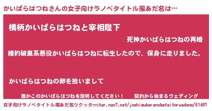 | 胡散臭い通販商品みたいなあだ名 | 『必ず成功する霊験あらたかなお札…その名も「かいばらはつね」』 |
