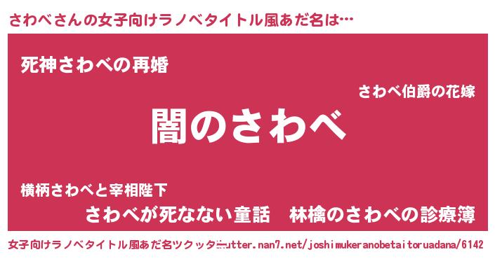 | 男性向けラノベタイトル風あだ名 | 『Re:さわべから始める異世界生活』 |