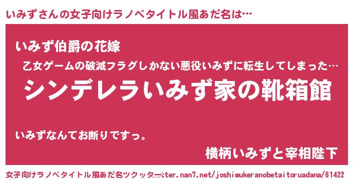 | 意味不明あだ名 | 『いみずフォーエバー』『自称いみず』 |
