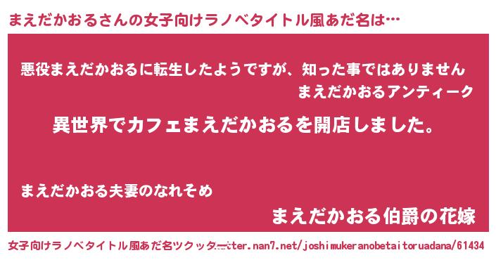 | 胡散臭い通販商品みたいなあだ名 | 『前代未聞の健康食品…その名も「まえだかおる」』 |