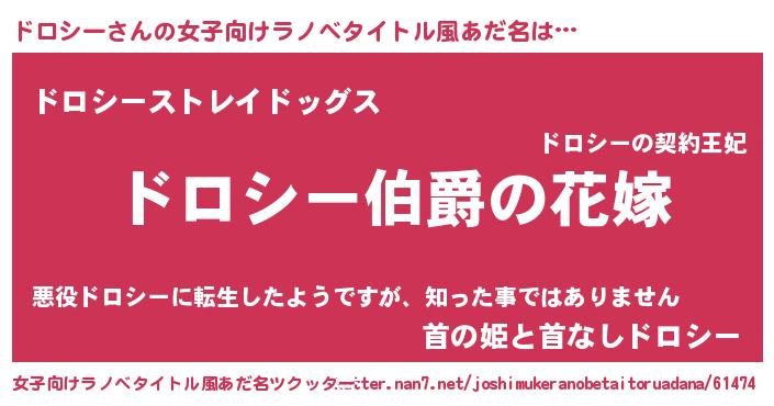 | ファンタジー風あだ名 | 『エターナルドロシーー』『ゼドロトゥ』 |