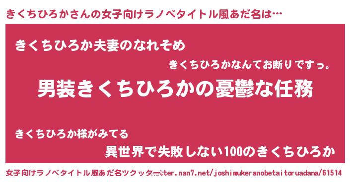 | 男性向けラノベタイトル風あだ名 | 『うちのきくちひろかが世界を掌握している!』 |