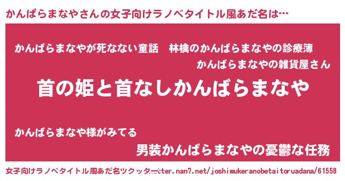 | 男性向けラノベタイトル風あだ名 | 『はたらくかんばらまなやさま!』 |