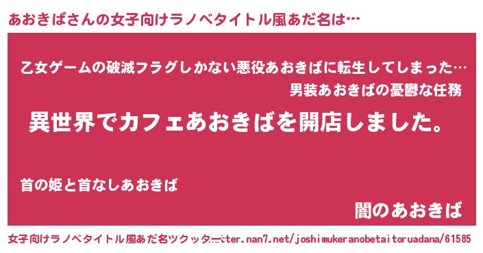 | 男性向けラノベタイトル風あだ名 | 『誰もが恐れるあのあおきばが、ぼくの専属メイドになるようです。』 |