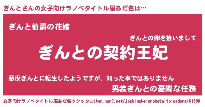 | ヘコむあだ名 | 『ぎんと(爆)』『豆乳』『ぎんぷりん』 |