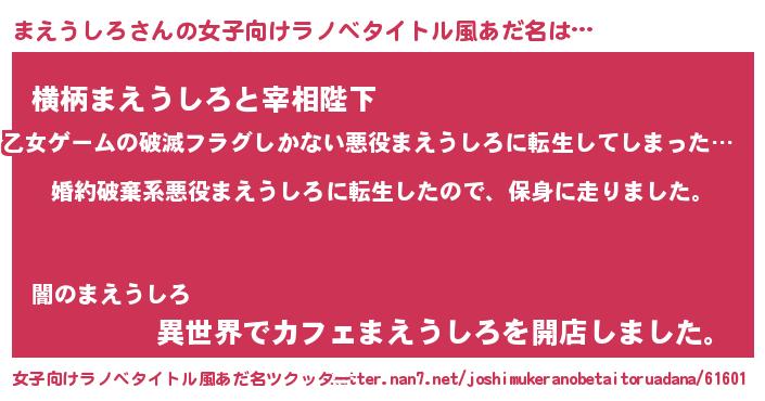 | 男性向けラノベタイトル風あだ名 | 『マエウシロスレイヤー』 |
