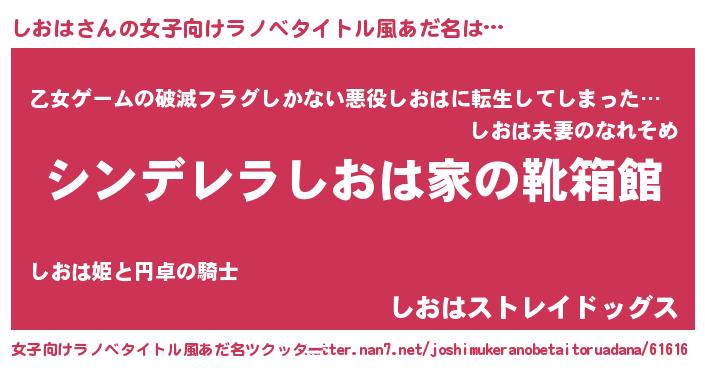 | 意味不明あだ名 | 『住所不定無職しおは(2歳)』『自称しおは』 |