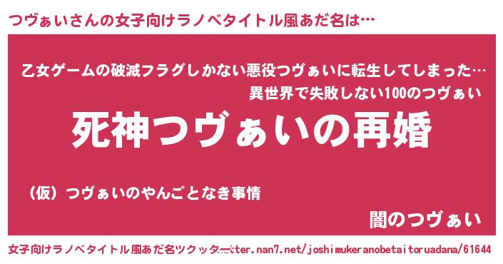 伝説のあだ名 | 『救世主となる占い師つヴぁい』 |