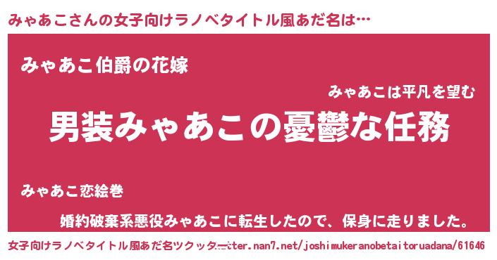 | 意味不明あだ名 | 『みゃあこフォーエバー』『自称みゃあこ』 |
